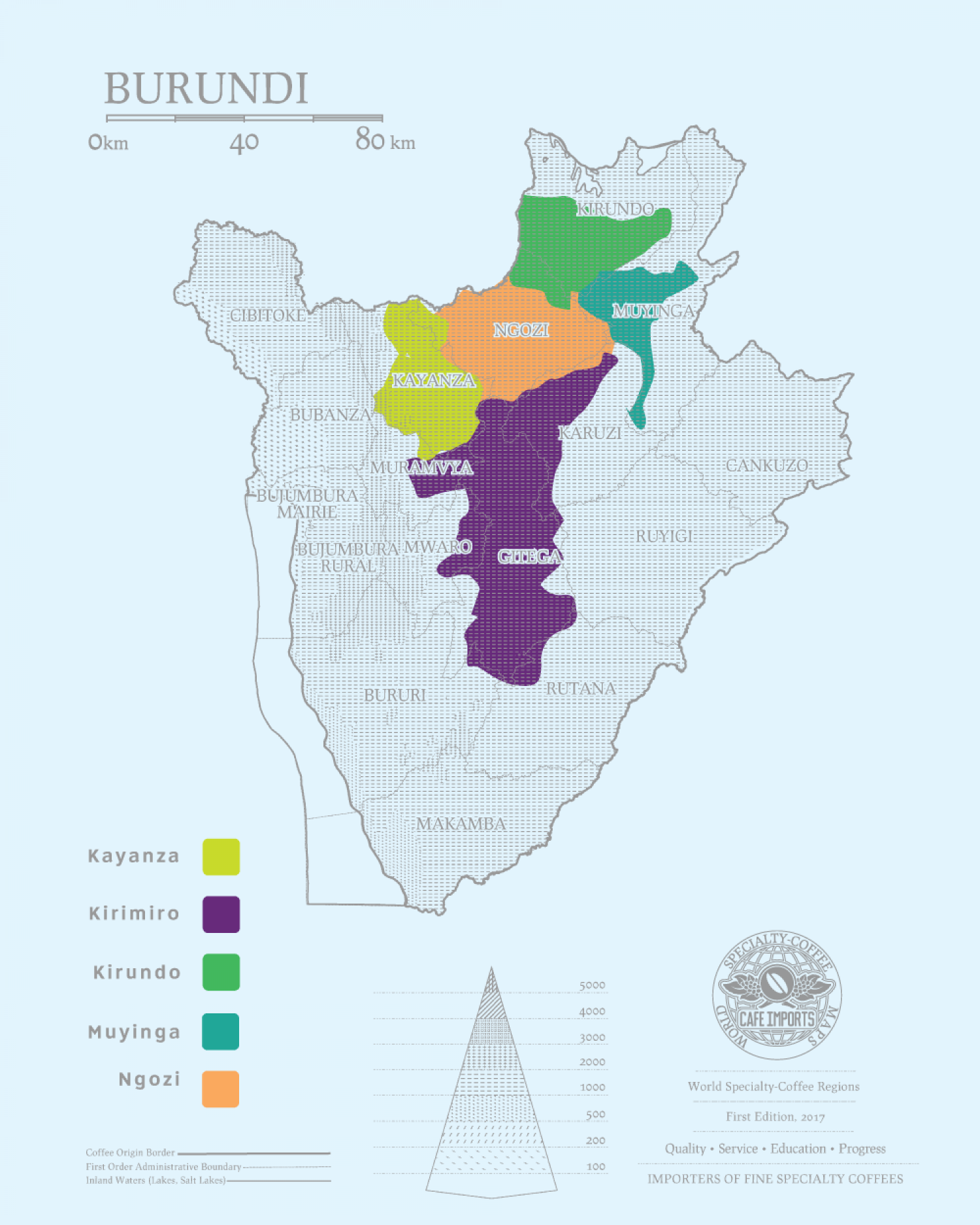 This purchasing style makes it nearly impossible, if not completely impossible, to arrive at single-producer, single-farm, or single-variety lots; instead, coffees are typically sold under the appellation of the washing station. (In Kayanza, there are 21 washing stations, including familiar names to Cafe Imports’ offerings page: Gackowe, Butezi, Gatare, and Kiryama.)