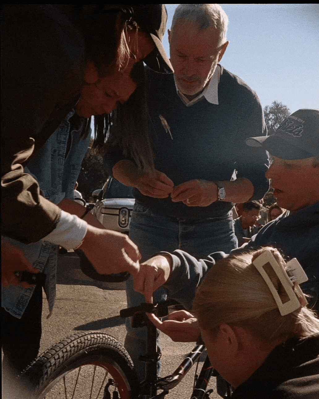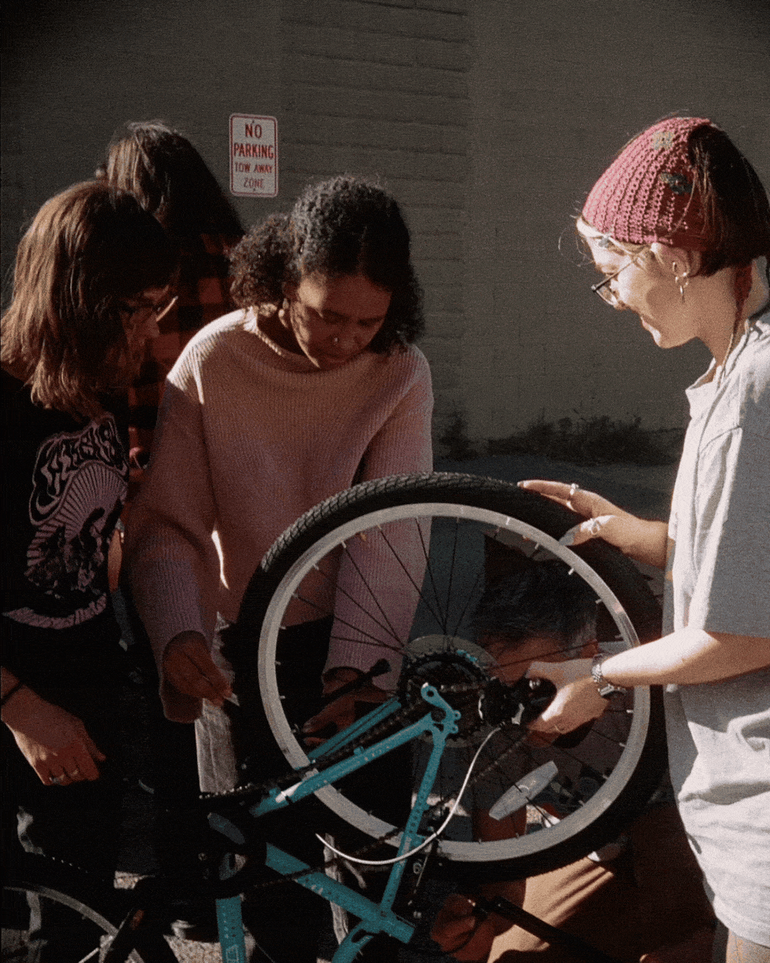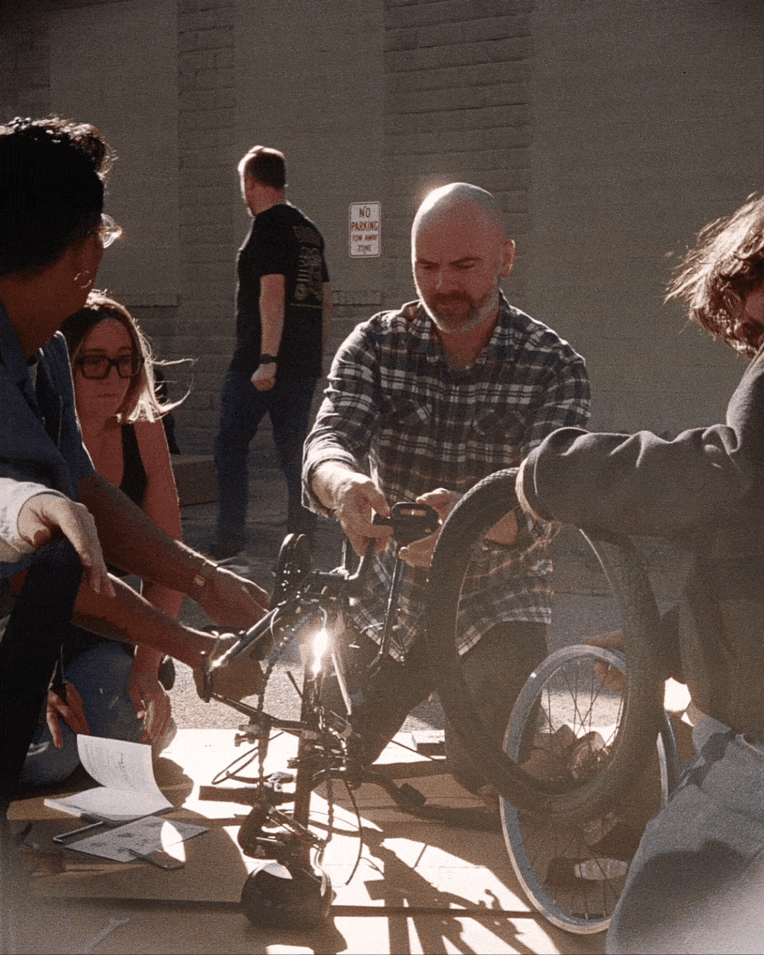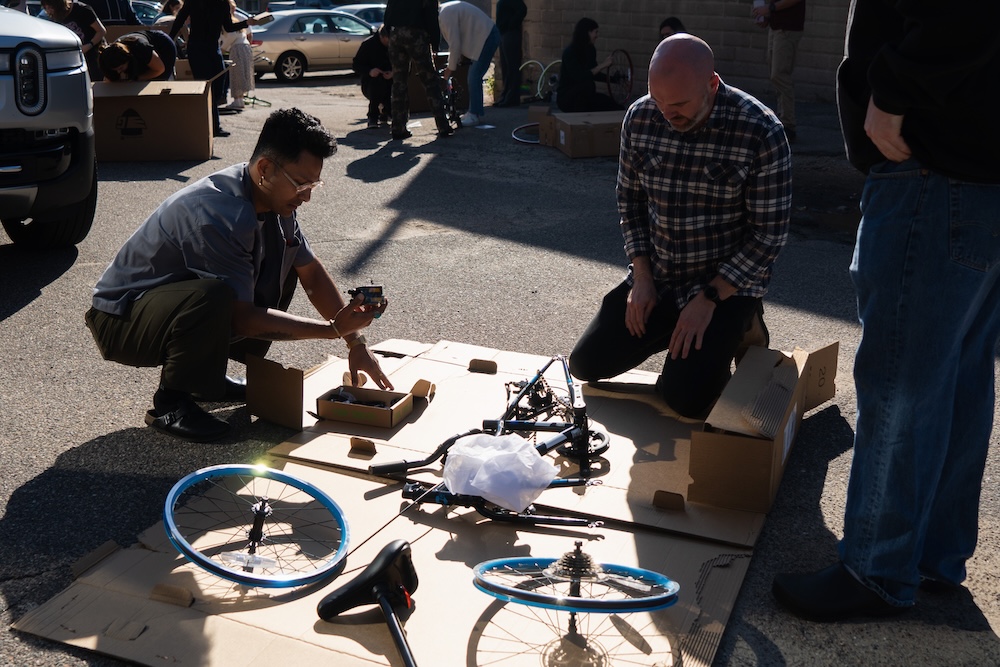 Wrenches flew, handlebars were mostly attached, and every bike at least had pedals, but you can’t well send them off without a little test ride!* We might not be kids anymore, but for that brief moment racing around the parking lot hoping the wheels weren’t coming off, we were.
