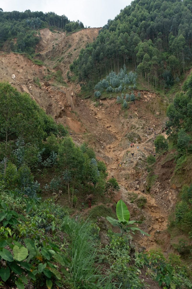The views and sounds you experience on the hike to the farm are not quite your typical hiking experience. The Kivu region has a history of coltan speculation mining, which is a source of Tantalum used in capacitors, glass lenses, and is used extensively by the defense industry in missile guidance systems and jet engines. Many of these mines on the Rwanda side of the lake have been abandoned and are now considered to be “artisanal” mines. That is to say, the scars in the landscape are used by locals who now extract the valuable ore by hand. Between the threat of landslides and the health impacts of handling the material, it’s a risky business, but can be a source of income for those who don’t have access to land [7].